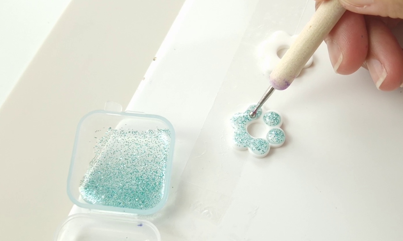 Un vaste champ créatif s'ouvre après cuisson : résine décorative (avec encre à alcool, mica ou paillettes), liquid clay coloré, peinture, marqueurs...