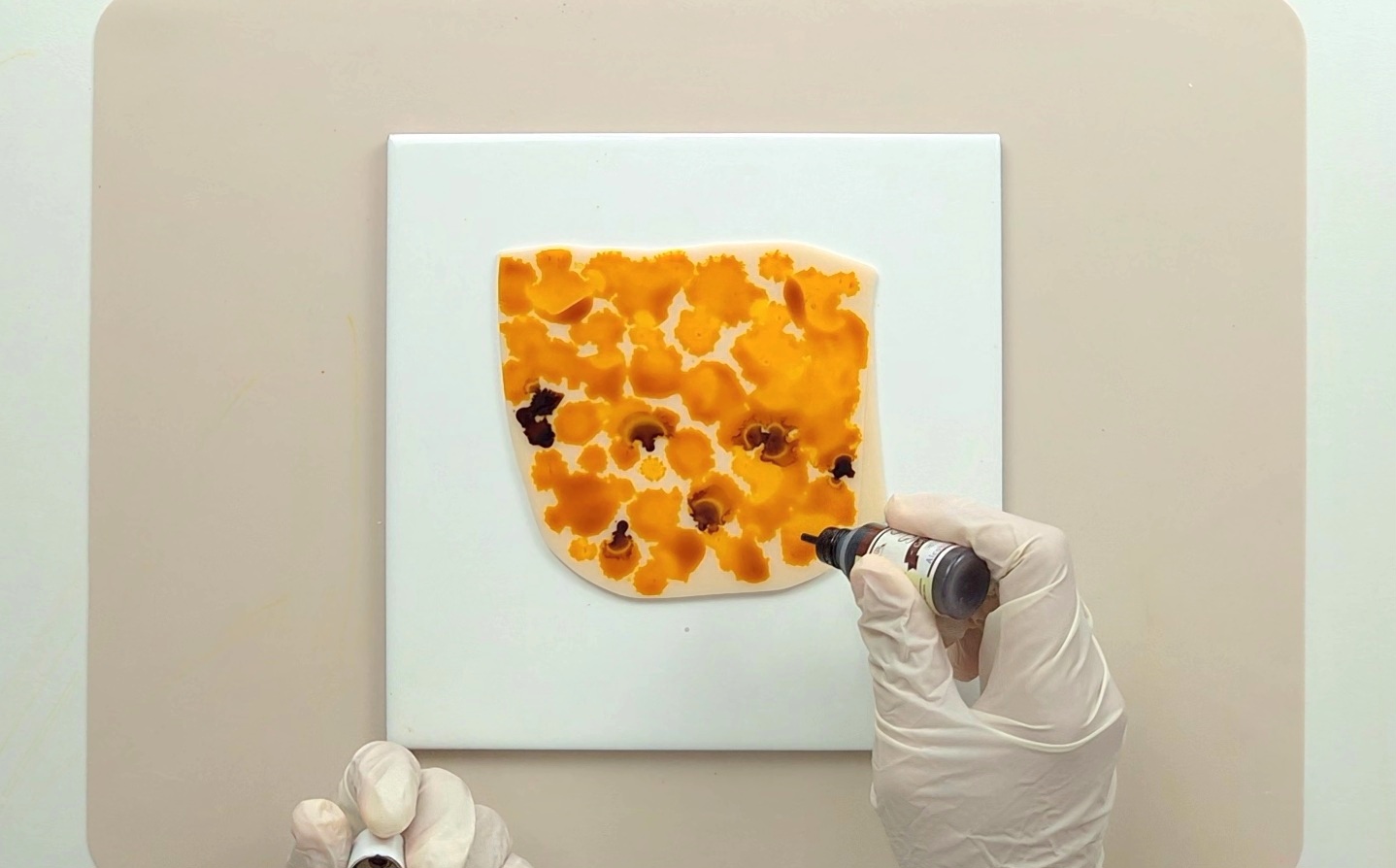 Translucide + encre à alcool = effets organiques. Découvrez deux façons d'utiliser les encres à alcool avec la pâte translucide : en surface ou en inclusion.